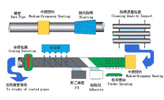 3PE防腐鋼管是指3層結(jié)構(gòu)聚烯烴涂層(MAPEC)外防腐鋼管,是國(guó)內(nèi)常用的一種防腐管道。其它還有IPN8710、FBE環(huán)氧粉末、環(huán)氧煤瀝青等防腐方式。